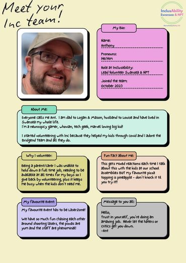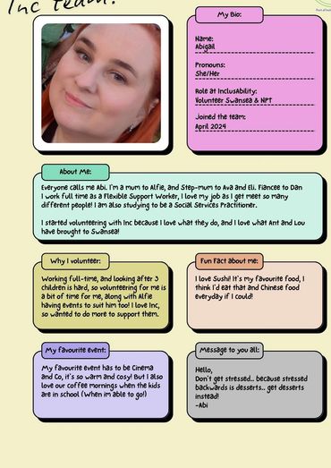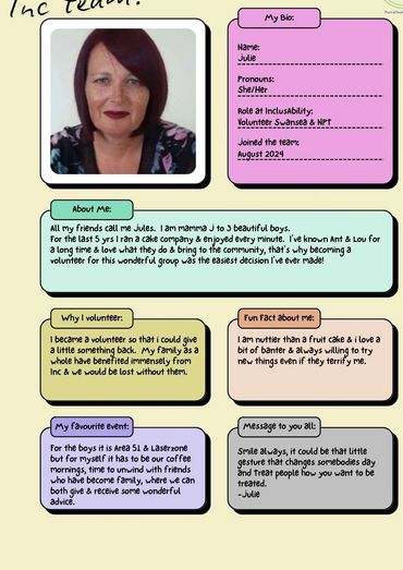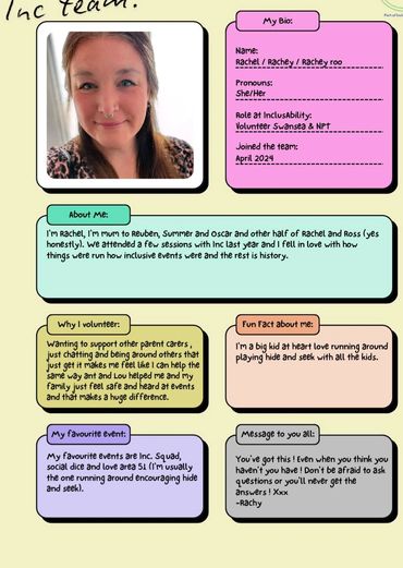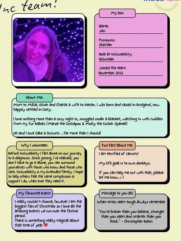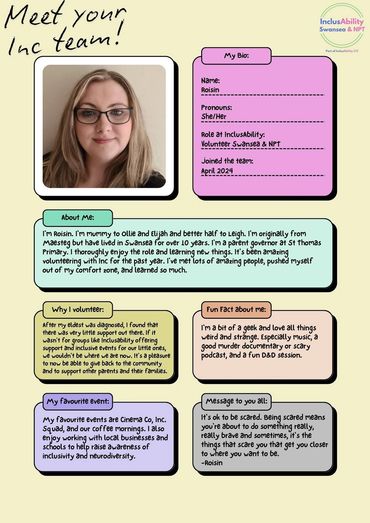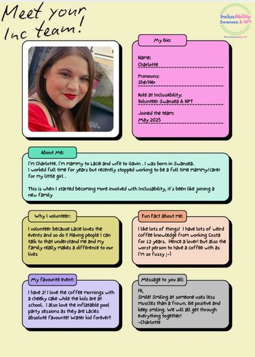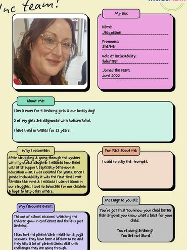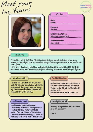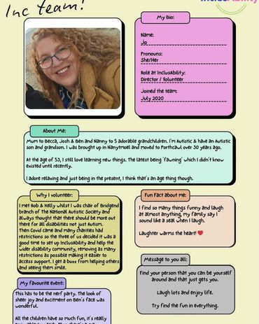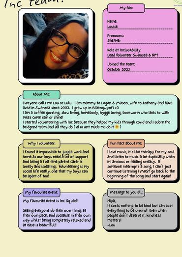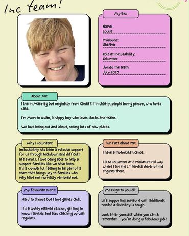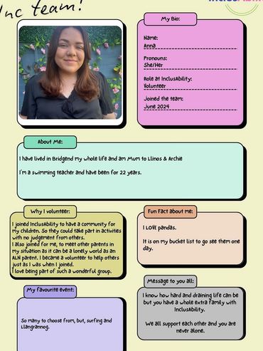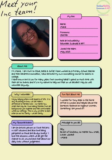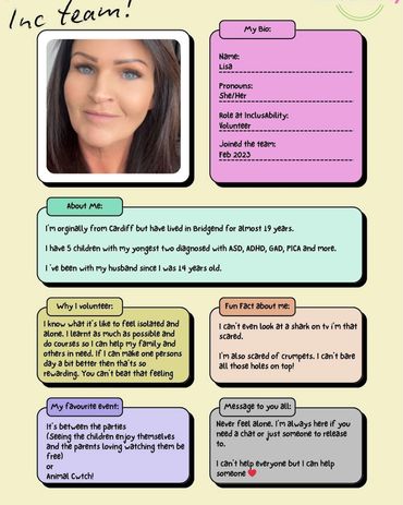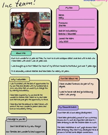 InclusAbility CiC is made up of fantastic people who are parents/carers of people with needs. This page is a chance to introduce you to Team Inc across South Wales and get to know them a little before meeting them at events.